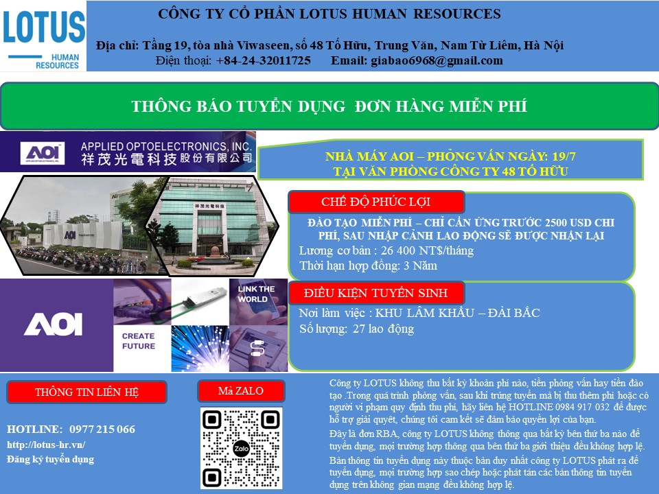 • Thông báo tuyển dụng đơn hàng MIỄN PHÍ